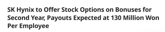 【导读】SK海力士宣布将向全体员工发放人均超1.36亿韩元绩效奖金